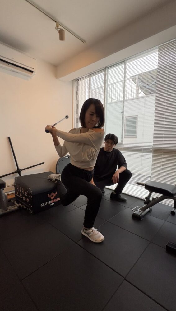 今回は、ブルガリアンスクワットと胸椎回旋のトレーニングを紹介します。